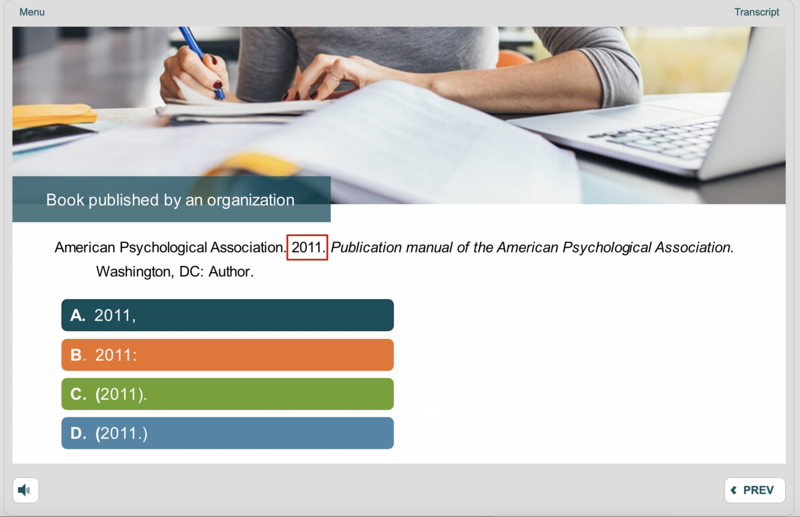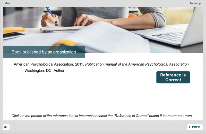 To address this challenge, I designed an interactive APA Reference Game in Articulate Storyline, allowing students to actively practice identifying correct APA citations. Instead of simply presenting rules, the game lets students select the formatting they believe is correct and receive immediate feedback, reinforcing learning through engagement and application. The course is accessible to all students at West Coast University, ensuring that learners across disciplines can develop the essential skills needed for accurately citing sources in their academic work.